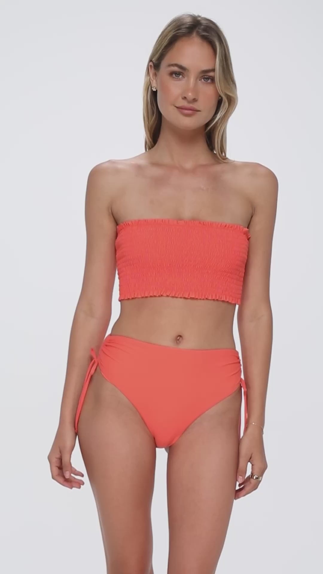 Our Kali Tube Top has a built-in shelf bra with removable cups for snug support. Her smocked design features a strap you can adjust or detach to effortlessly switch up your look. Perfect for sunbathing or a swim, this bikini top combines functionality and fashion in one sweet package.