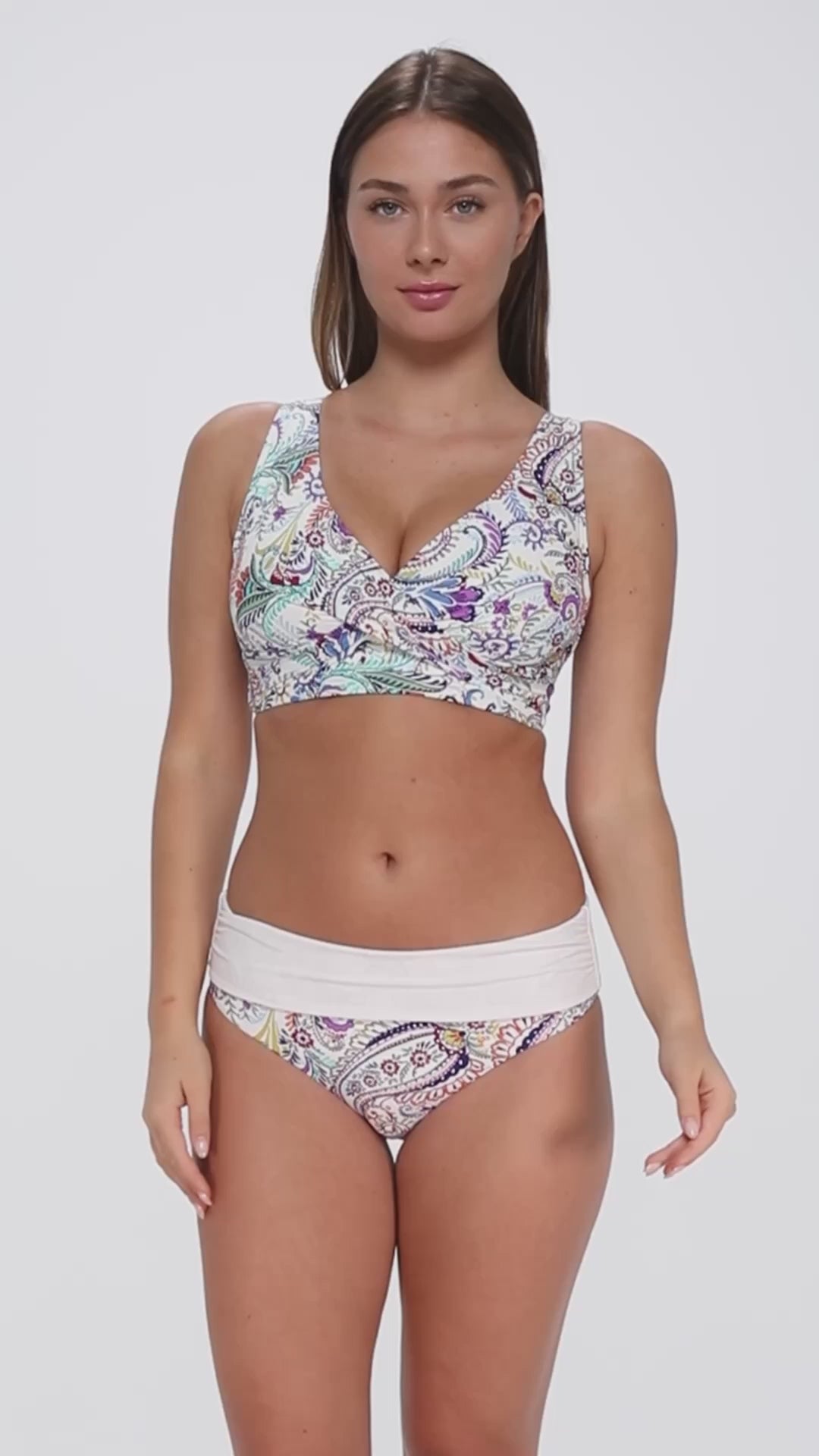 A versatile bottom that gives you options! the Capri High Waist offers two distinct silhouettes: the soft waistband can be worn as a classic high-waist or folded down for a more relaxed mid-rise fit. Featuring shirring at the hips for a flattering and chic accent.