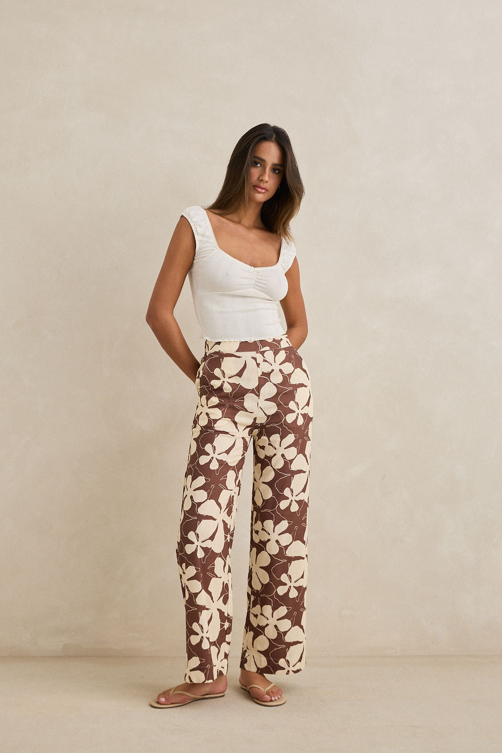Rhythm Chocolate Melia Floral Wide Leg Pant