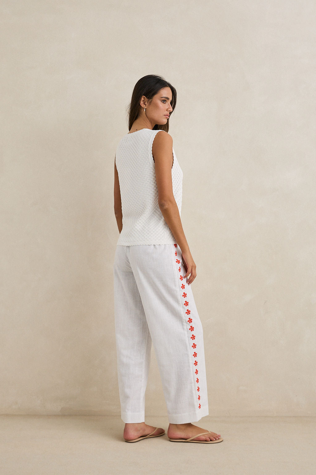 Rhythm White Melia Floral Embroidered Beach Pant