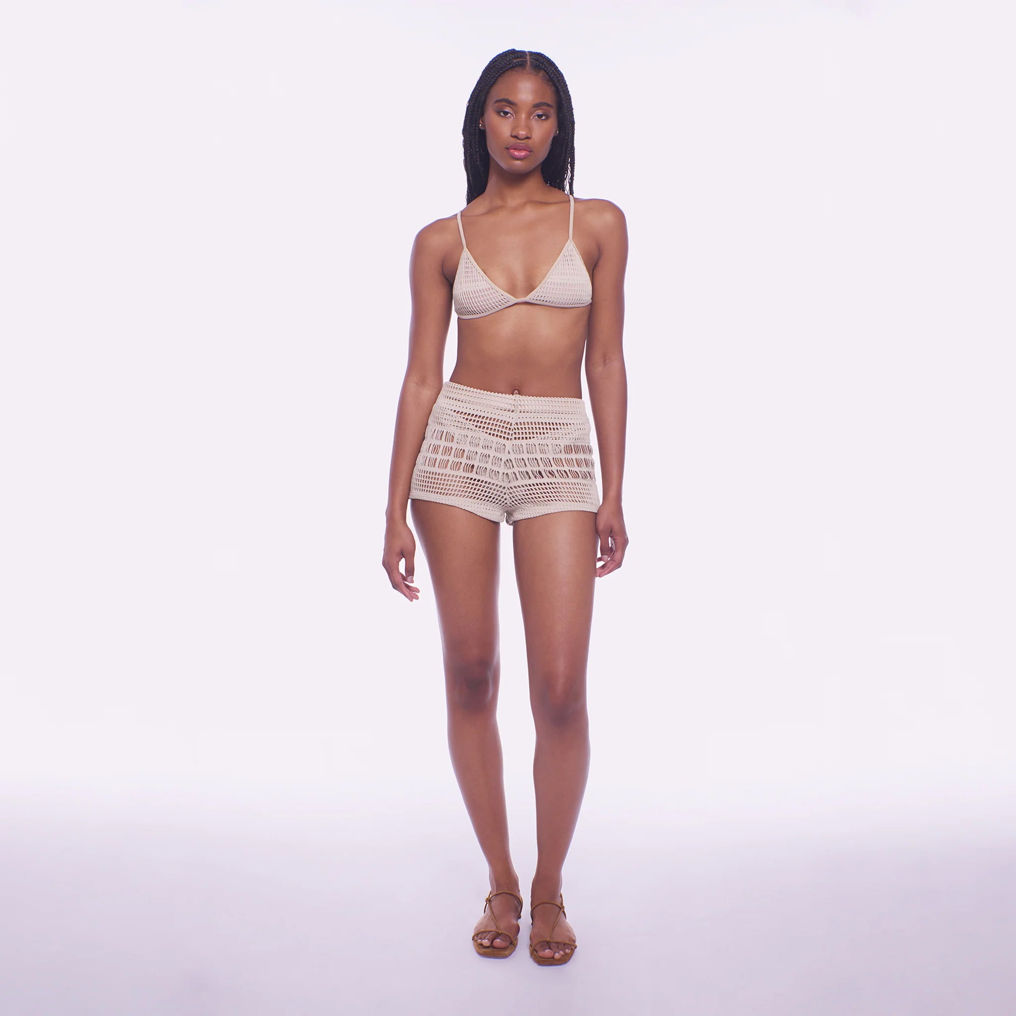 The Ciara Mini Short is an effortless cover up essential crafted in our Tayrona Nights fabric, a textured black mesh that feels bold and elevated. Designed with an easy elastic waistband and a relaxed mini short silhouette, this unlined style is perfect for layering over your favorite swim. Worn as part of a matching set with coordinating Tayrona Nights bikinis or styled on its own, Ciara creates an easy, polished resort look made for sun filled days and beachside nights.