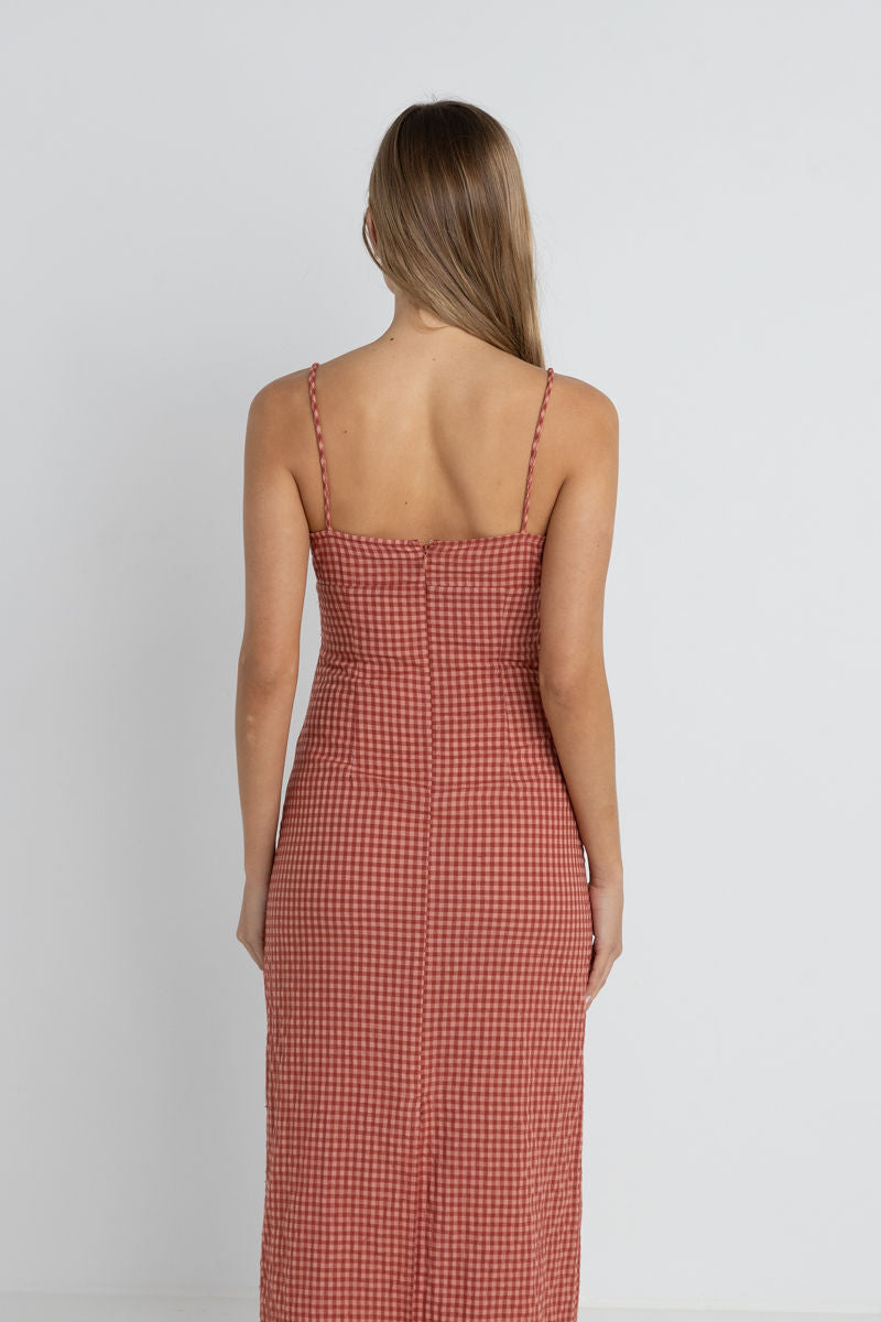 Rhythm Red Lola Check Gathered Maxi Dress - XL / red / 0425W-DR13-RED is backordered and will ship as soon as it is back in stock.