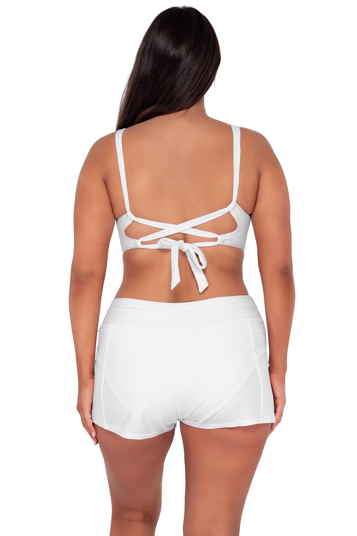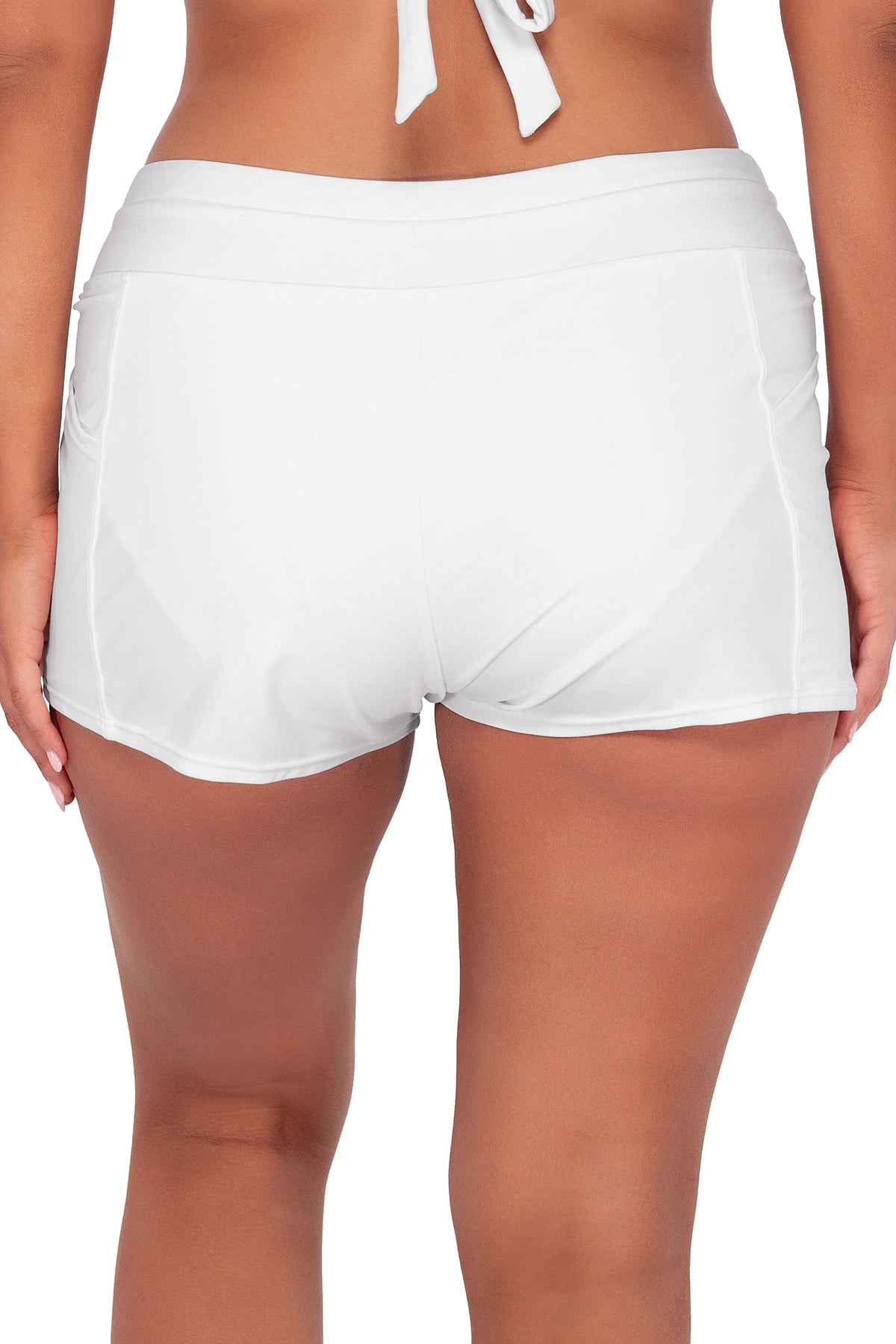 The Laguna Swim Short is both comfortable and functional! Featuring side pockets for all of your essentials and an adjustable drawstring waistband. Also includes an attached inner brief and relaxed fit. Coverage: Full. *Top sold separately. Fabric Content: 82% Nylon, 18% Spandex
