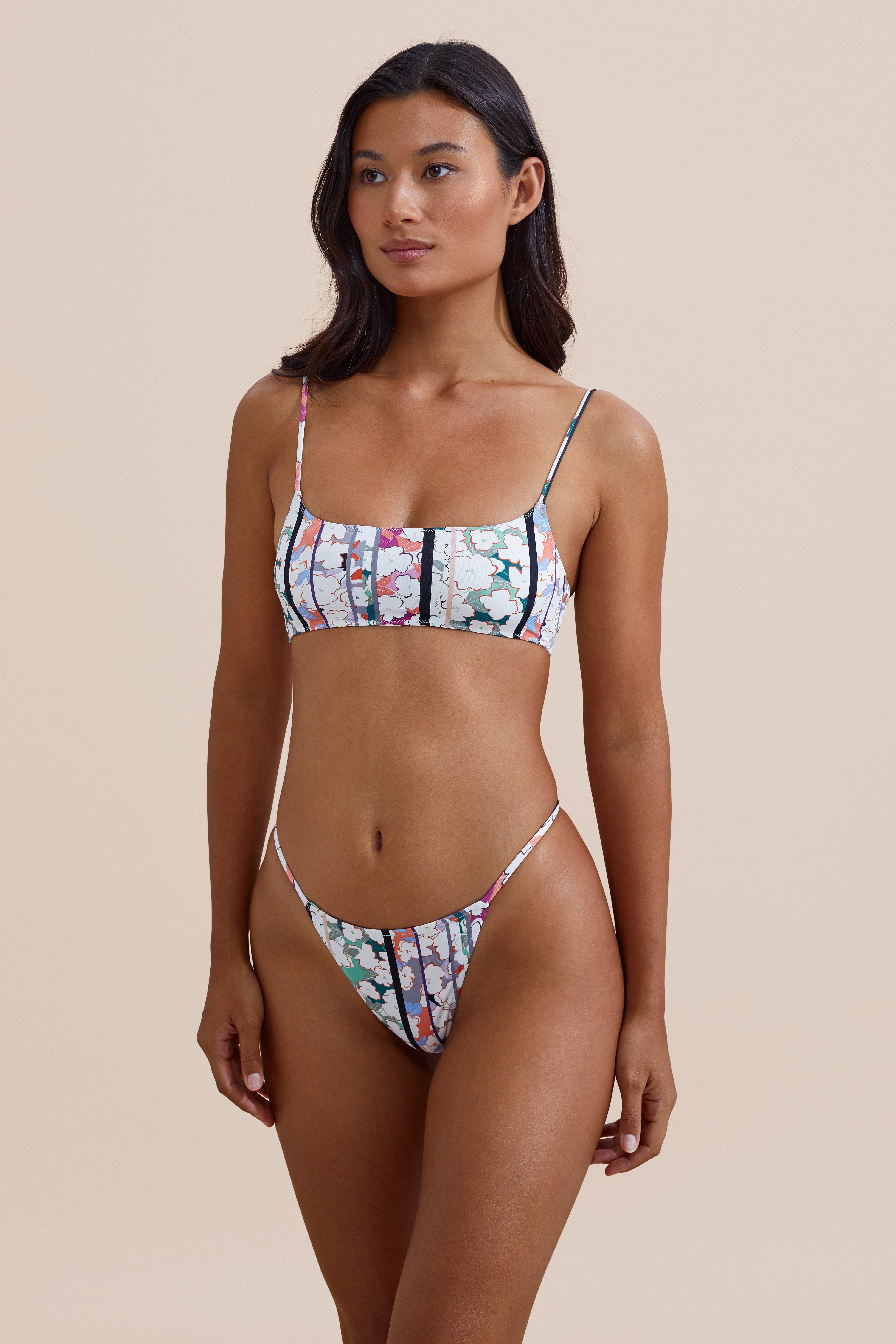 The Sonny Top by Stone Fox Swim is where minimal meets sustainable. Featuring a scoop front with thin shoulder straps, move with ease anywhere the sun takes you. Consciously cut with 85% recycled nylon and 15% spandex.