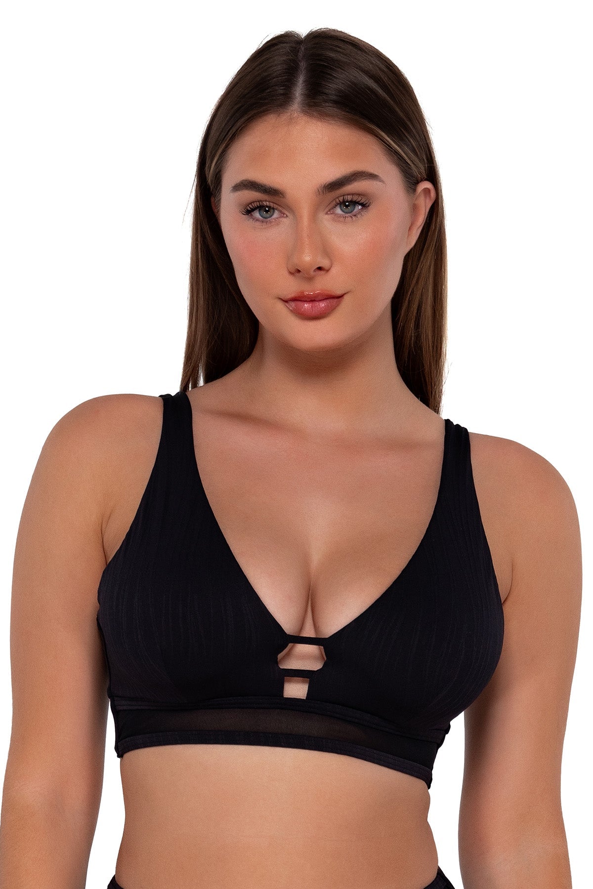 Celebrate your curves with the sleek and supportive Danica Top. This top is designed to enhance your figure with extra support from a wide underbust band and double hook closures. Other features include a sheer mesh-inset detail, hidden underwire, removable cups, and a J-hook that enables the adjustable straps to convert to a crossback.